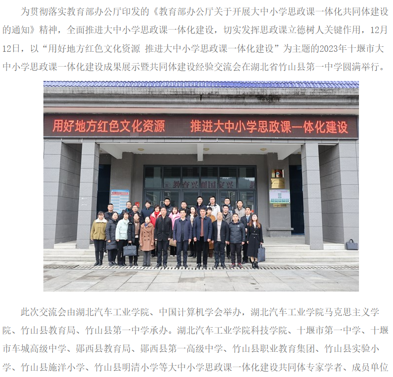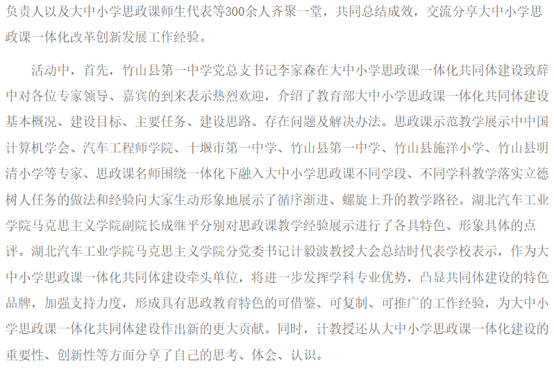 【湖北教育新闻】十堰:大中小学思政课一体化建设总结交流会在竹山县第一中学举行