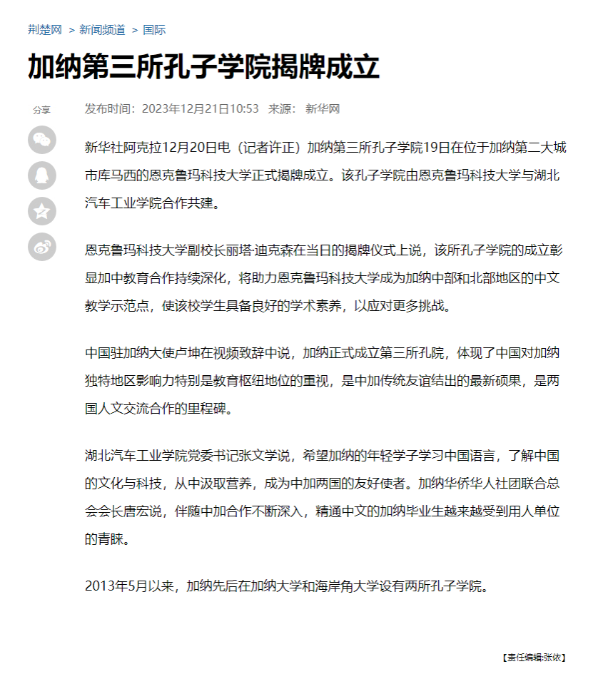 【荆楚网】加纳第三所孔子学院揭牌成立