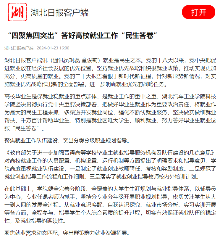 【湖北日报】“四聚焦四突出”答好高校就业工作“民生答卷”