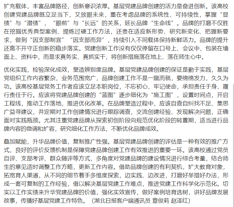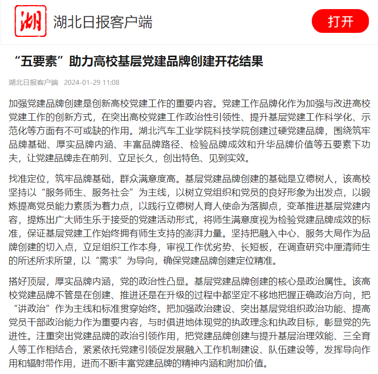 【湖北日报】“五要素”助力高校基层党建品牌创建开花结果