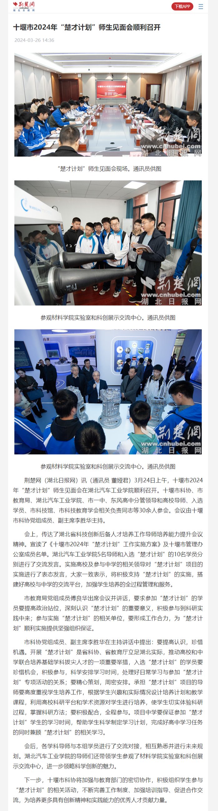 【荆楚网】十堰市2024年“楚才计划”师生见面会顺利召开