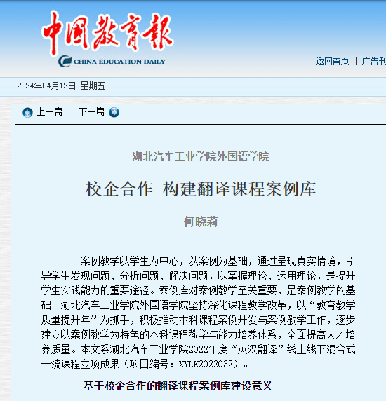 【中国教育报】国产精品永久久久久久久久久|91精品无码国产在线观看一区|久久人爽爽人爽爽ąV无码自慰|最新无码国模国产在线|2020最新无码国产在线观看外国语学院:校企合作 构建翻译课程案例库