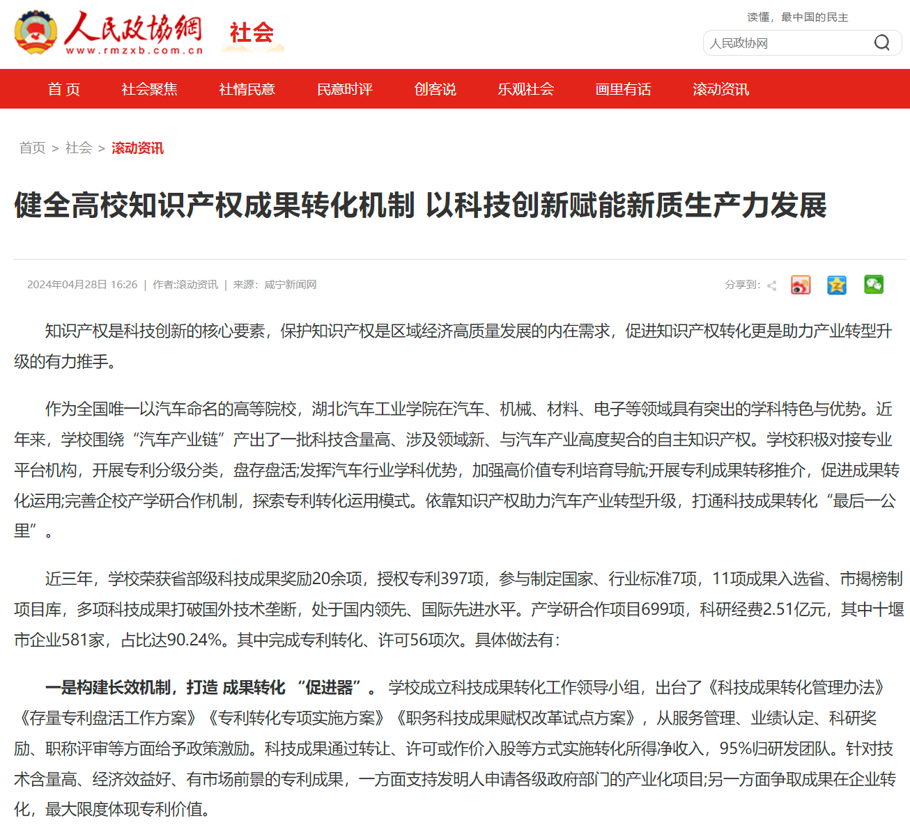 【人民政协网】健全高校知识产权成果转化机制 以科技创新赋能新质生产力发展