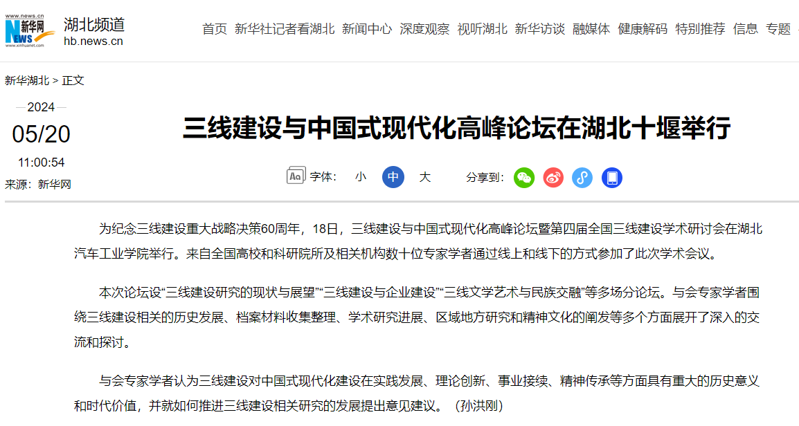 【新华网】三线建设与中国式现代化高峰论坛在湖北十堰举行