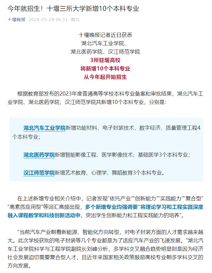 【十堰晚报官微】今年就招生!十堰三所大学新增10个本科专业