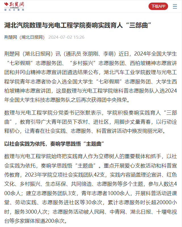 【荆楚网】湖北汽院数理与光电工程学院奏响实践育人“三部曲”