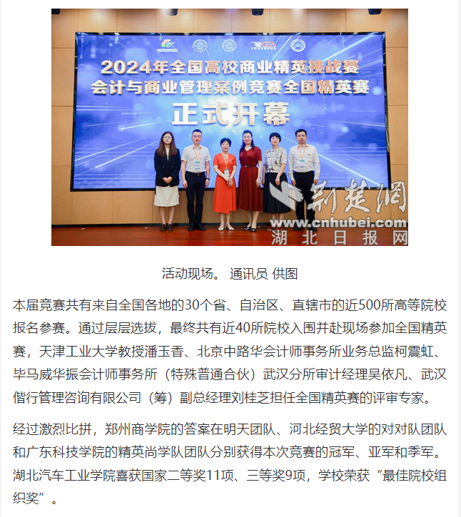 【荆楚网】2024年会计与商业管理案例竞赛全国精英赛在湖北汽院落幕