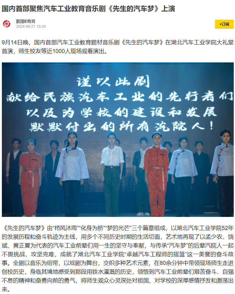 【搜狐】国内首部聚焦汽车工业教育音乐剧《先生的汽车梦》上演