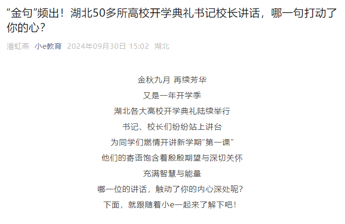 【中国教育在线】“金句”频出!湖北50多所高校开学典礼书记校长讲话,哪一句打动了你的心?