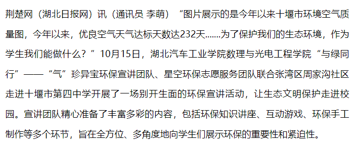 【荆楚网】环保宣讲进课堂 生态文明浸童心