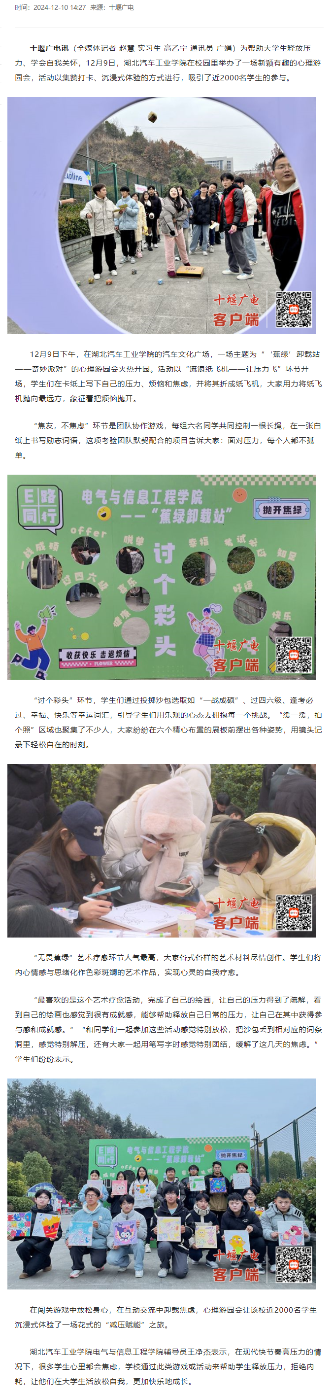 【十堰广播电视台】十堰一高校举办心理游园会,为学生花式减压