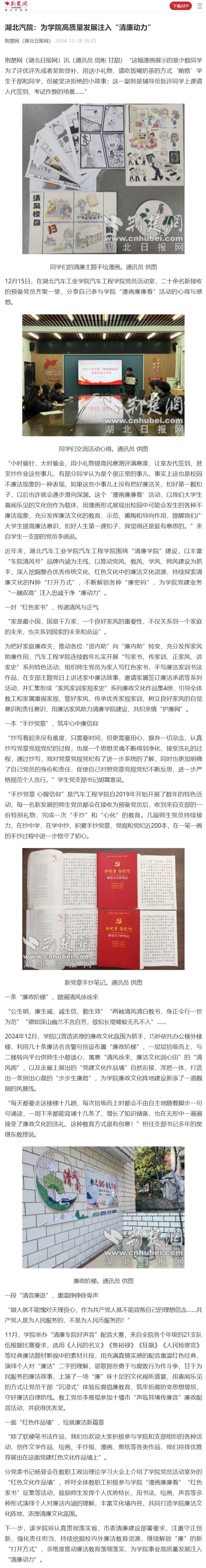 【荆楚网】湖北汽院:为学院高质量发展注入“清廉动力”