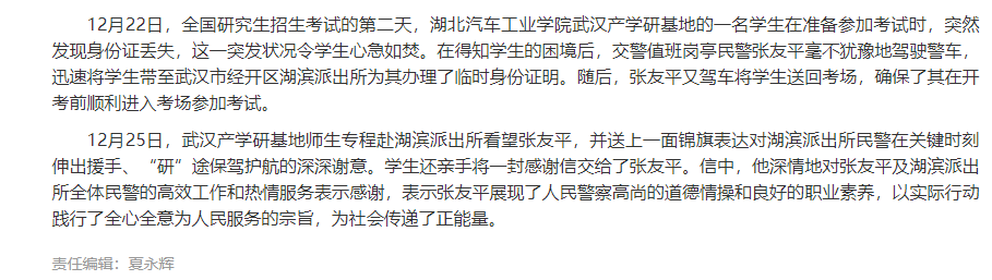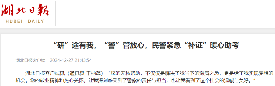 【湖北日报】“研”途有我,“警”管放心,民警紧急“补证”暖心助考