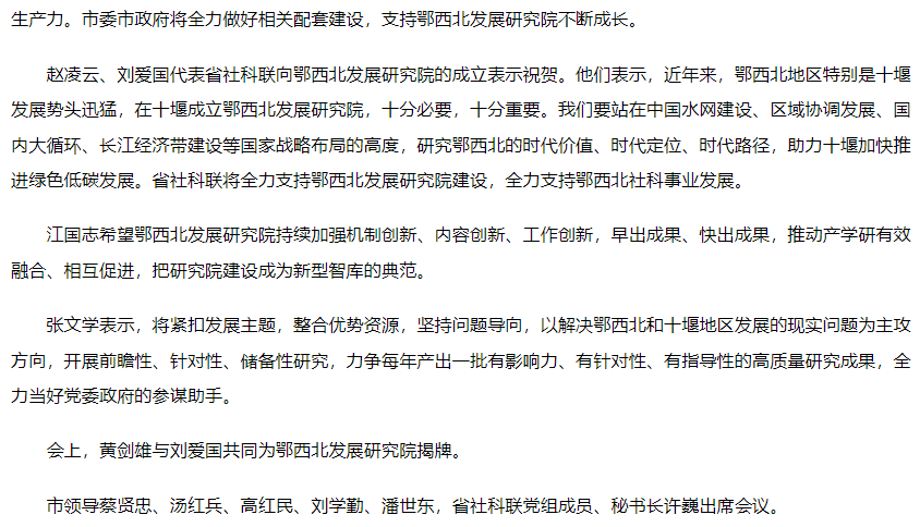 【秦楚网】鄂西北发展研究院成立:发挥高端智库作用 助力绿色低碳发展